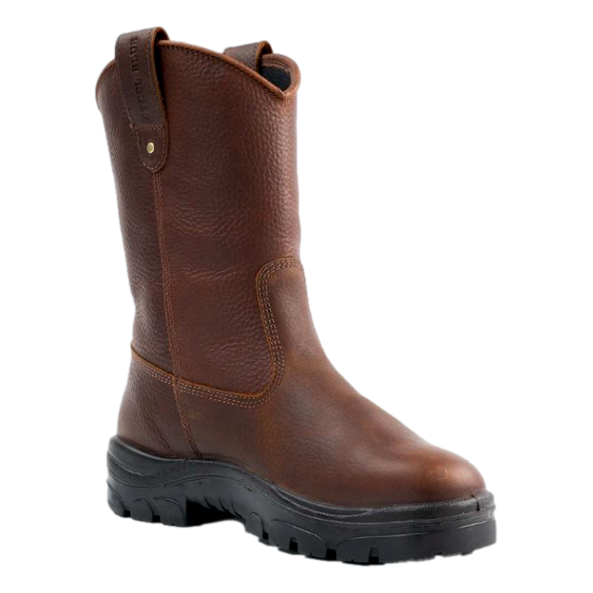 The SteelBlue 812915M Heeler WP boot in Size 12 features a waterproof build with a durable upper suited for work environments requiring moisture protection.