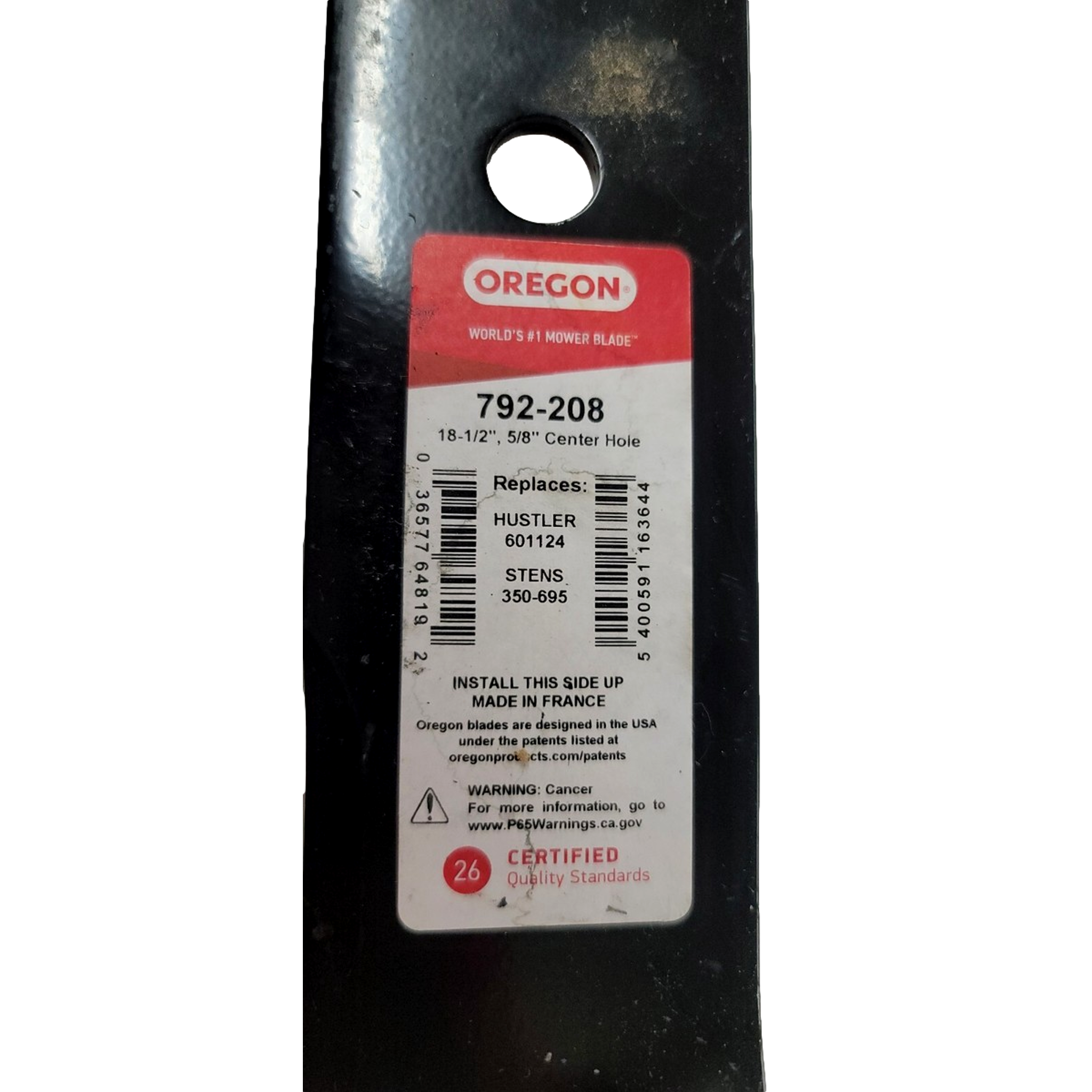 Product Overview: Oregon 792-208 mower blade is an 18-1/2" high-lift replacement blade designed for Hustler mowers using OEM part number 601124. Engineered for precision cutting and efficient grass discharge on compatible mower decks.